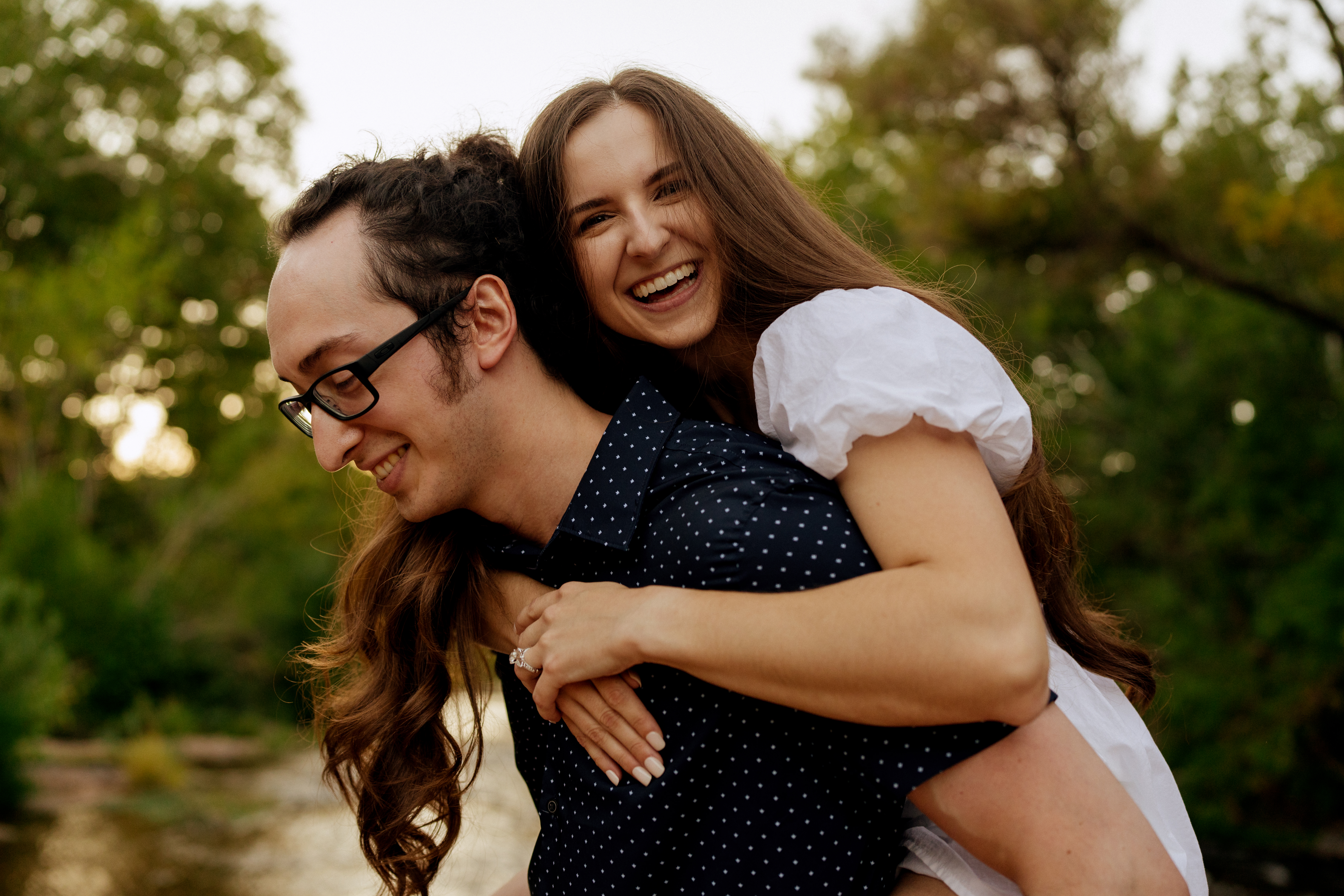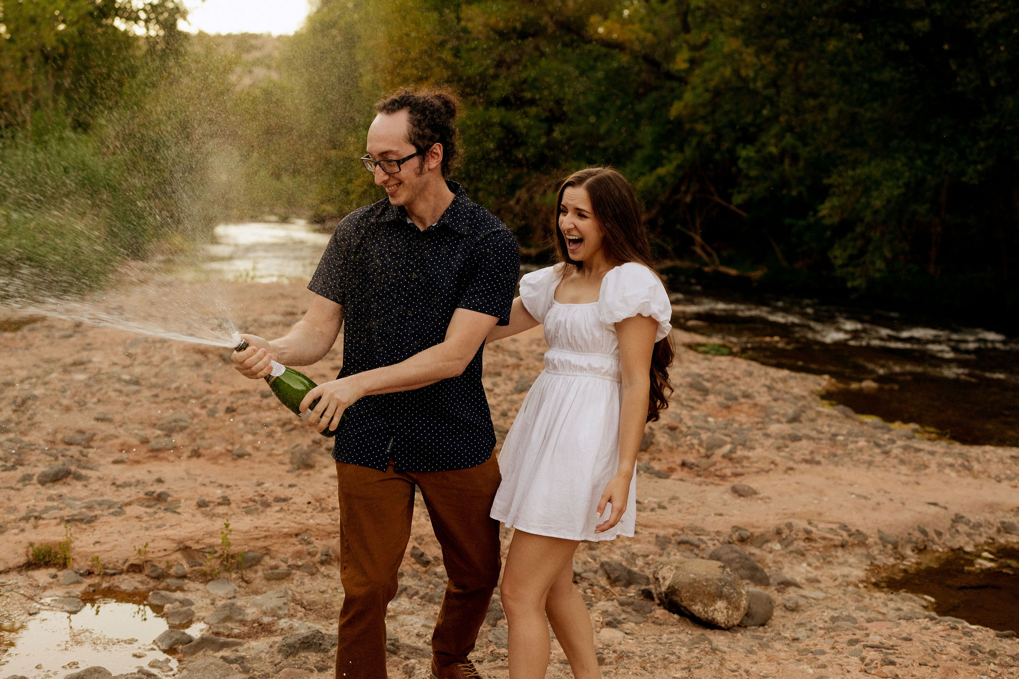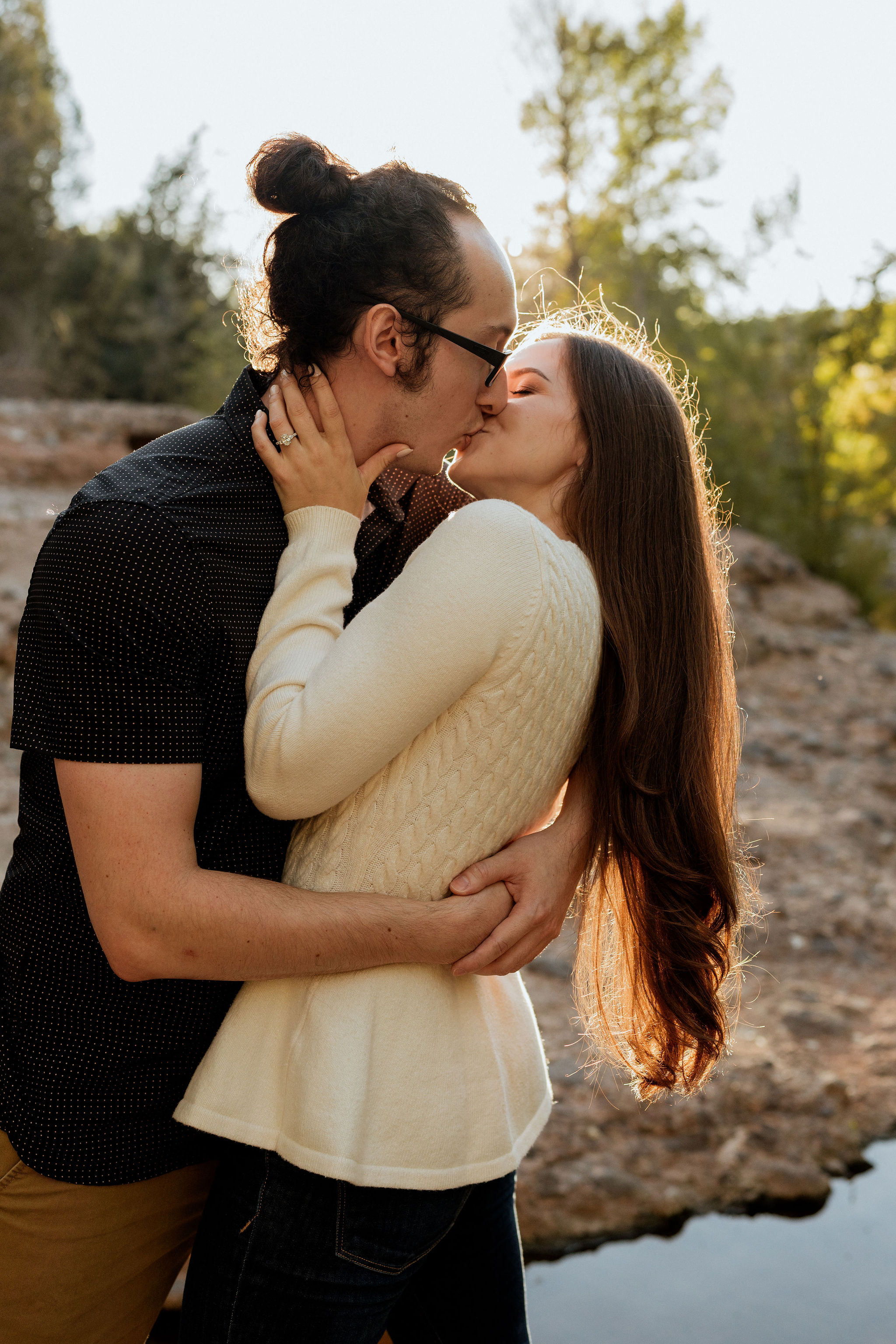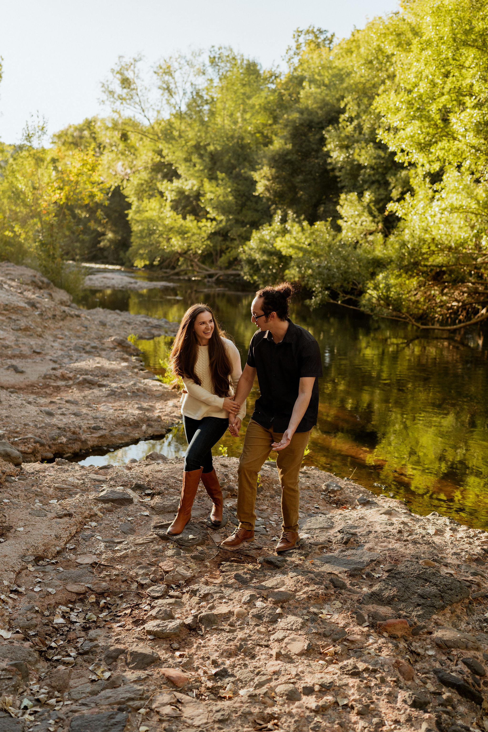 The first place Eric and Jessica went hiking together was West Fork Trail at Oak Creek Canyon in Sedona, Arizona. Over the years they frequently visited this hike with their family and friends as it became one of their favorite places to go to. The week of the proposal Eric asked Jessica multiple times to come hiking on the weekend with their friend, Alex, but Jessica didn't want to wake up early on a weekend. Eventually she agreed to come (as long as they didn't leave too early) and Alex, Eric, and Jessica set out on the two hour ride to Sedona while Eric nervously held a ring box in his pocket the entire drive.